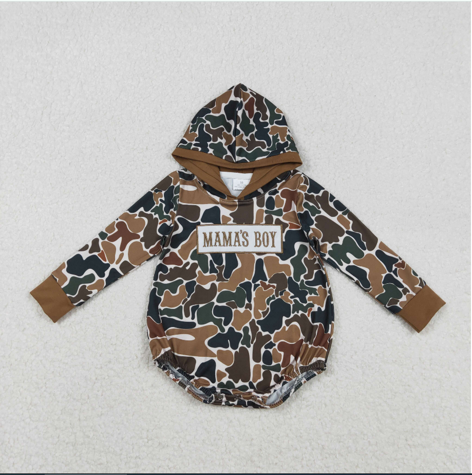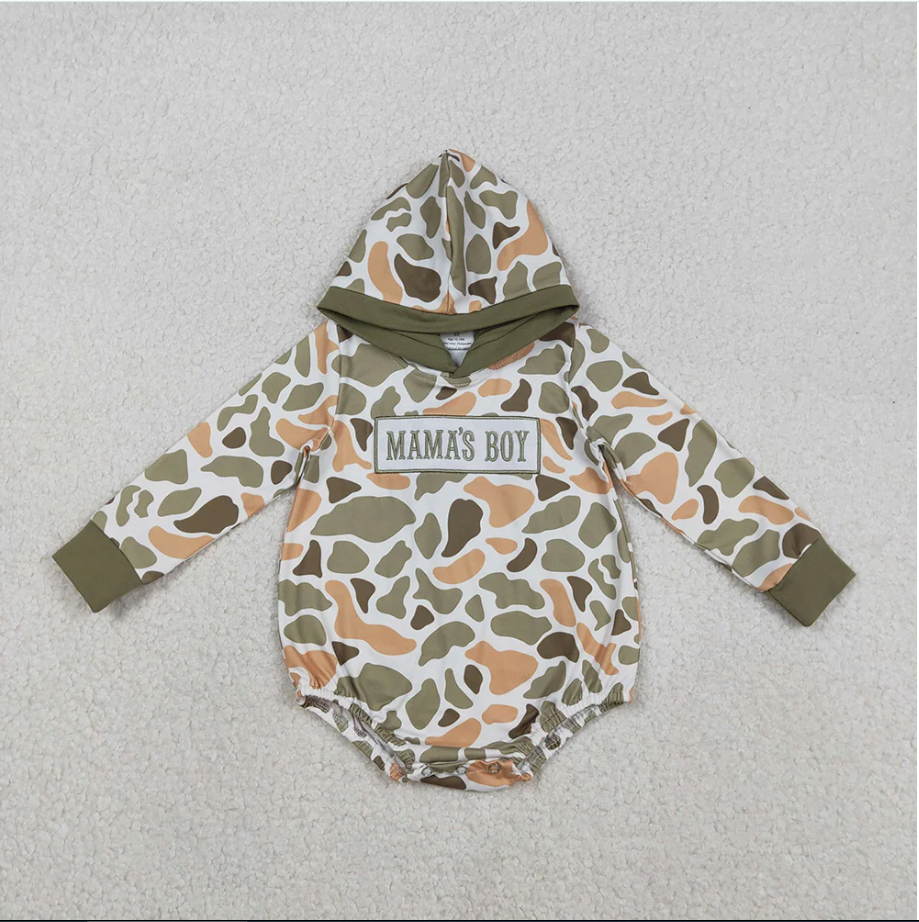 ชุดรอมเปอร์เด็กผู้ชายลายพรางปักลาย MAMA'S BOY 8 สี สำหรับพี่น้อง