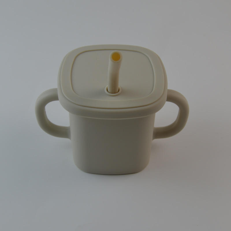 ถ้วยซิลิโคนกันหกสำหรับทารกพร้อมหลอดถ้วยฝึกหัดดื่มสำหรับเด็กวัยหัดเดินด้ามจับคู่