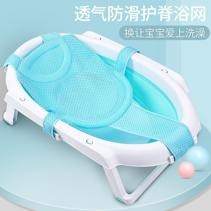 ตาข่ายอาบน้ำเด็ก รูปทรงกากบาท ตาข่ายแซนวิช แบบสากล ห้ามุม สำหรับทารกแรกเกิด 0-12 เดือน สีขาว สีชมพู สีฟ้าอ่อน