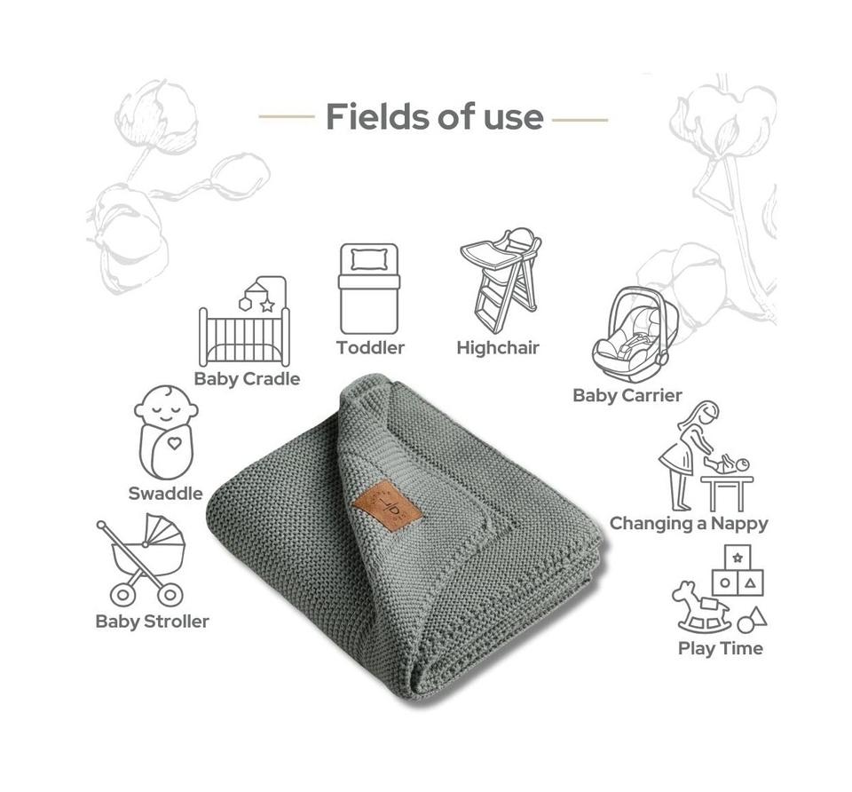 ผ้าห่มเด็ก Alina-80x100ซม. (100% ผ้าฝ้ายอินทรีย์-380gr) สีเขียว