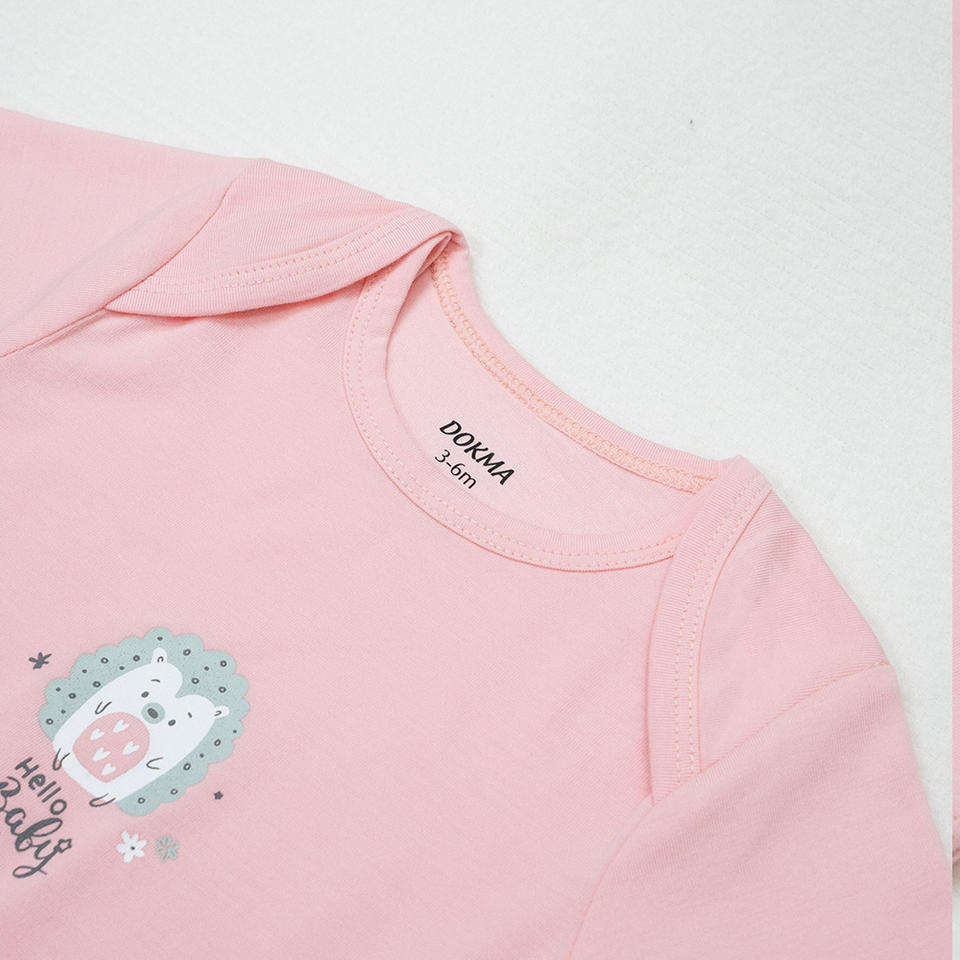 ชุดบอดี้สูทเด็ก 3 ชิ้น ลายการ์ตูน ผ้าถักผสมใยไผ่และสแปนเด็กซ์ เนื้อนุ่ม ระบายอากาศดี แขนสั้น ติดกระดุมเม็ดเดียว