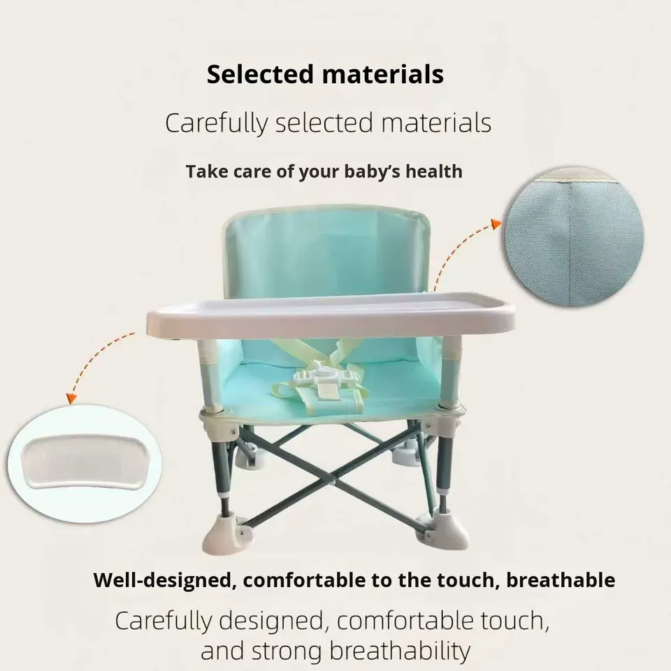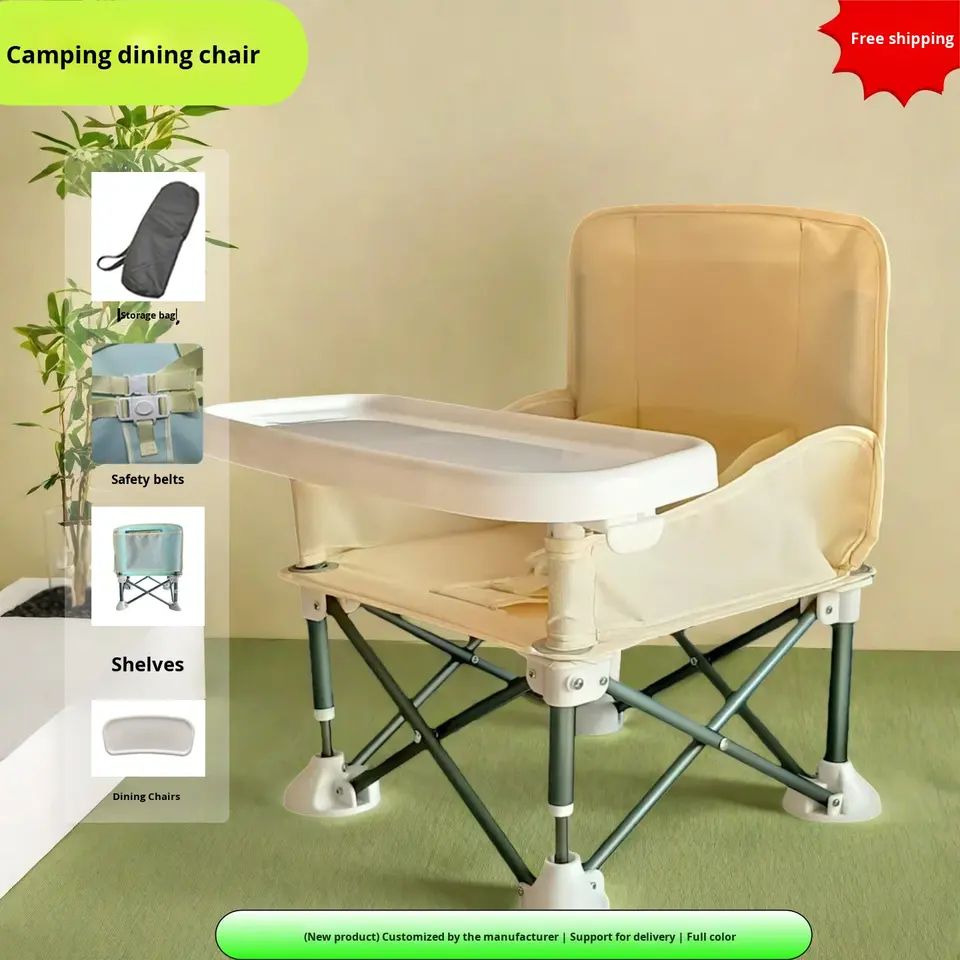 เก้าอี้ทานข้าวเด็กพับได้แบบพกพาสำหรับเด็กทารก ทำจากโลหะ เหมาะสำหรับการตั้งแคมป์และออกนอกบ้าน