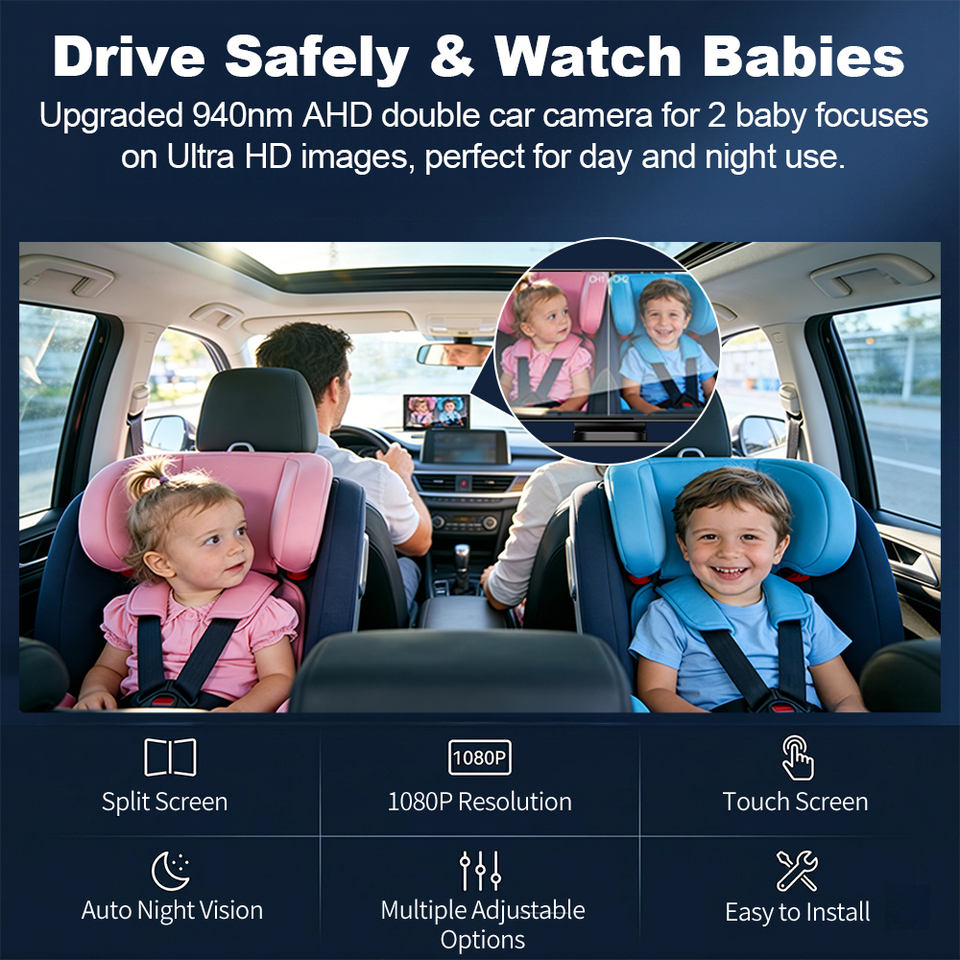 กล้องติดรถยนต์สำหรับเด็ก หน้าจอสัมผัส IPS 7 นิ้ว ความละเอียด 1K พร้อมระบบมองเห็นในเวลากลางคืนแบบอินฟราเรดคู่ รับประกัน 1 ปี สำหรับผู้ปกครองและเจ้าของสัตว์เลี้ยง รุ่น ZD26