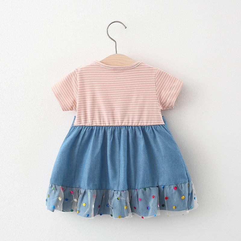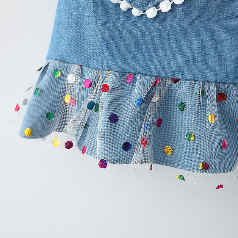 Name:Clothes Kids Dresses Girls Jeans Lace Dress With Beaded And Buttons