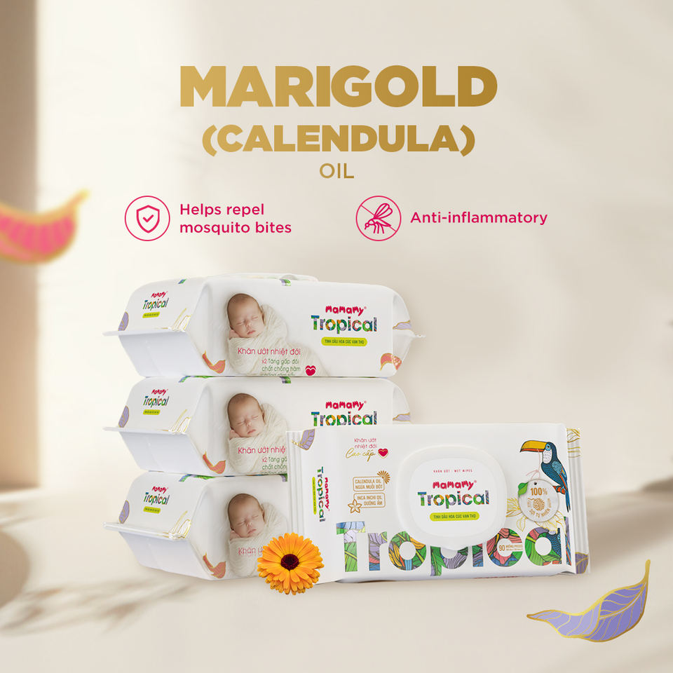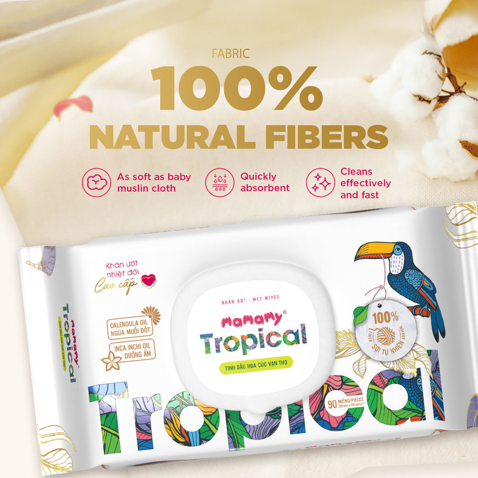 ผ้าเช็ดทำความสะอาดผิวเด็กอ่อนโยน ไม่ถักทอ 80 ชิ้น MAMAMY TROPICAL ป้องกันผื่น 200 มม.x150 มม. แผ่นเช็ดทำความสะอาดเปียก โคโค ฟอสฟาติด ไทด์