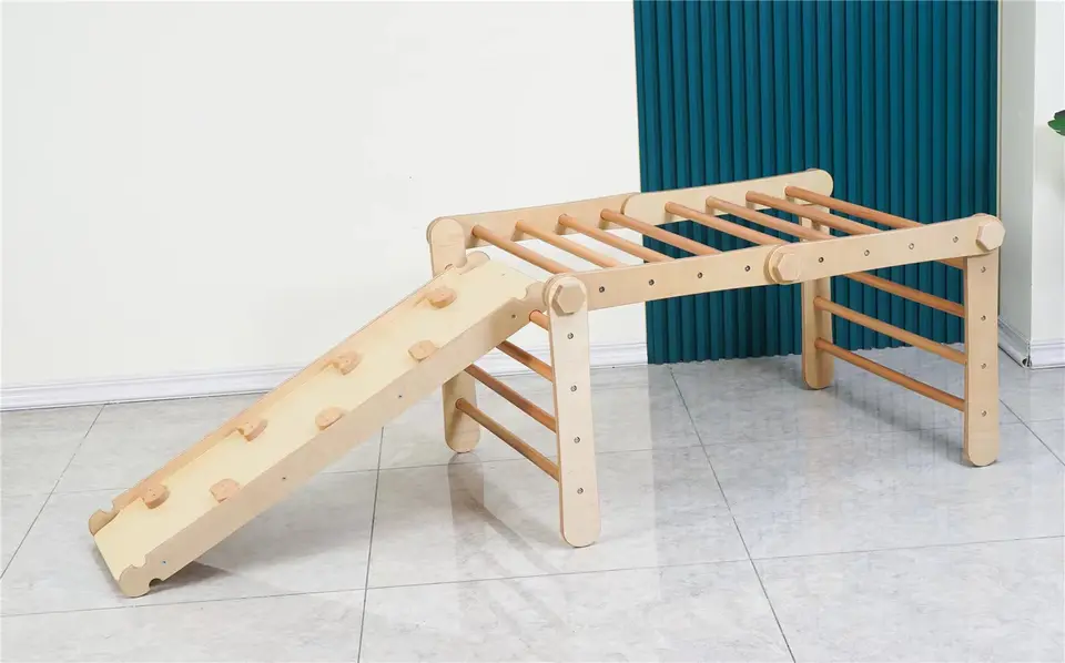 ชุดสนามเด็กเล่นในร่มที่ทันสมัยสำหรับเด็กกรอบไม้สำหรับเด็กปีนเขาพร้อมสไลด์และชิงช้าสำหรับใช้งานกลางแจ้ง