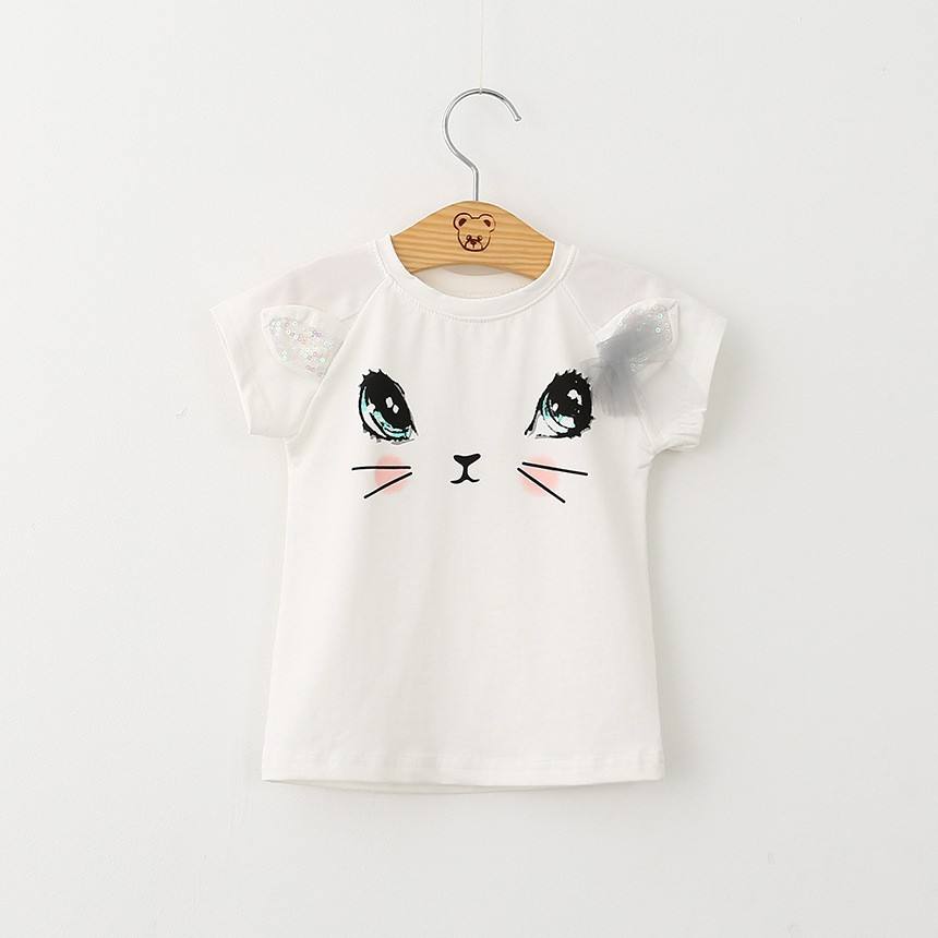 ชุดเซ็ตเสื้อผ้าเด็กผู้หญิงหน้าร้อน บูติก ชุดกระโปรงลูกไม้ลายแมวน่ารัก