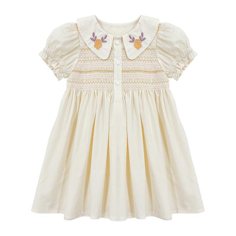 ชุดเดรสเด็กผู้หญิงลายดอกไม้ปักลาย คอปักลาย น่ารัก สไตล์ลำลอง สำหรับฤดูร้อน