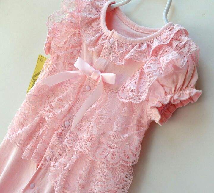 ชุดรอมเปอร์ลูกไม้ระบายสีชมพูสำหรับเด็กทารก ราคาถูก