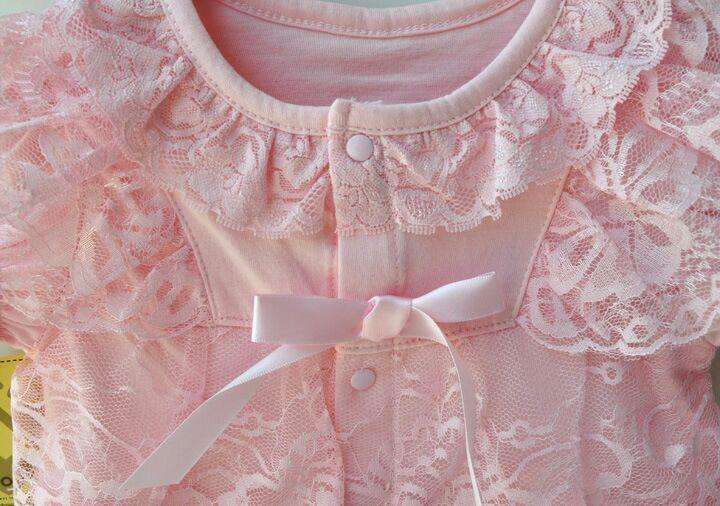 ชื่อ:ชุดรอมเปอร์ลูกไม้ระบายสีชมพูสำหรับเด็กทารก ราคาถูก