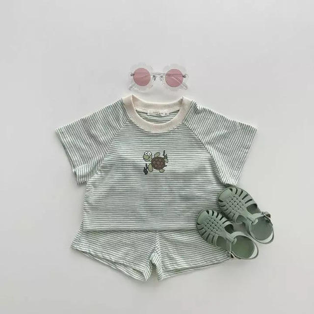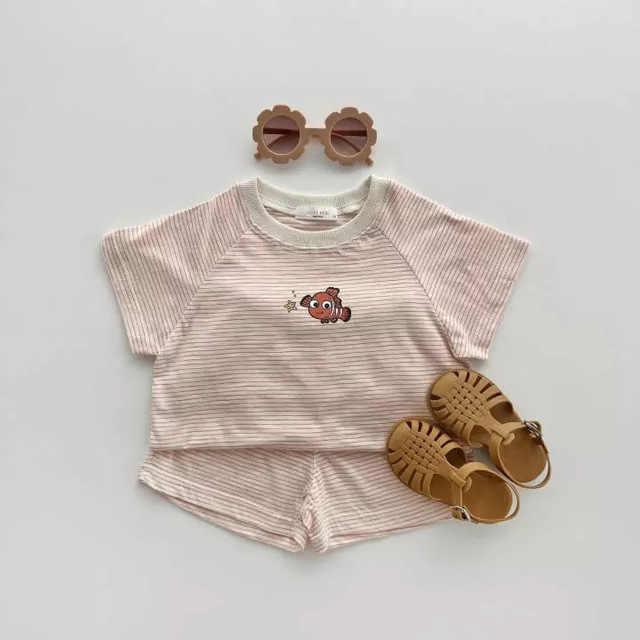 ชุดเสื้อผ้าเด็ก 2022 ฤดูร้อนใหม่เด็กผู้หญิง 2 ชิ้นเสื้อผ้าเสื้อยืดแขนสั้น + กางเกงขาสั้นผ้าฝ้ายลายชุดเด็กผู้ชาย