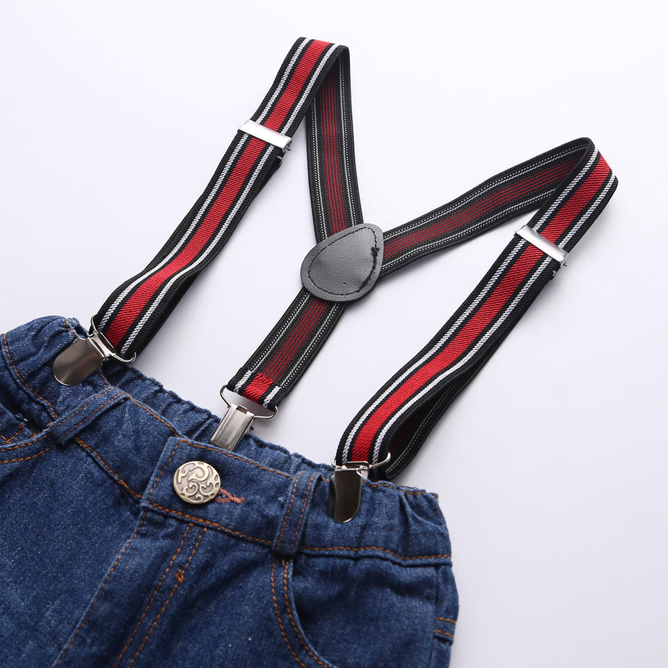 ชุดเสื้อผ้าเด็กผู้ชาย ชุดกางเกงยีนส์พร้อมเสื้อเชิ้ตผ้าเดนิม สายเอี๊ยมแบบธุรกิจ จากประเทศจีน