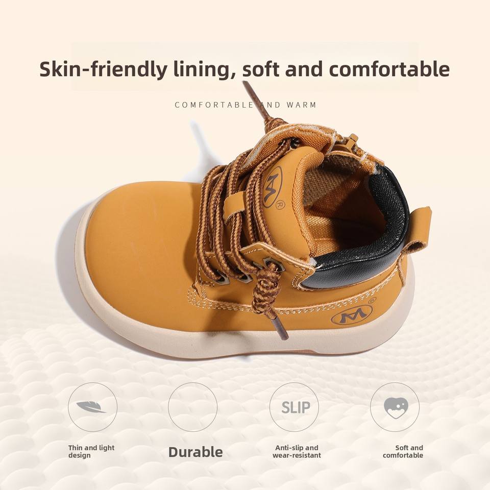 รองเท้าบูทเด็กอ่อน ผ้าฝ้าย รุ่นใหม่ ฤดูหนาว 2025 บุผ้ากำมะหยี่ อุ่นสบาย พื้นนุ่ม บุขนด้านใน ซิปด้านข้าง ผูกเชือก