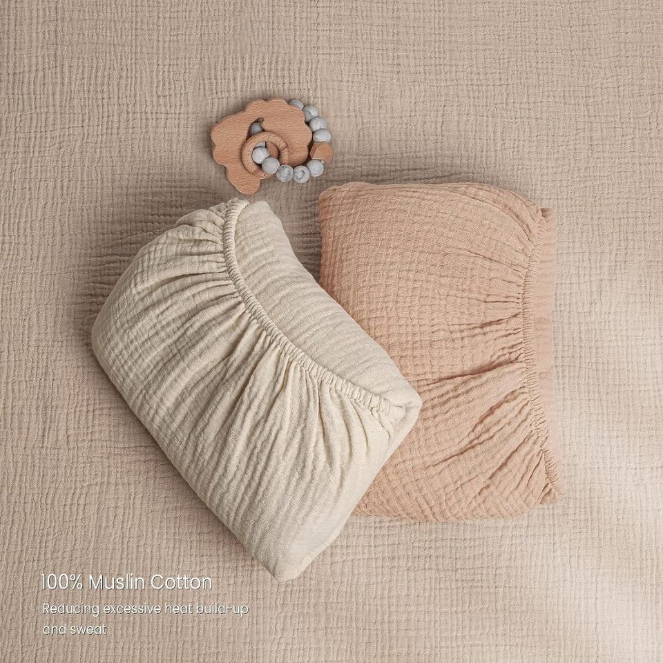 ชุดเครื่องนอนสำหรับเด็กเล็กเตียงเด็กสีชมพูสำหรับเด็กผู้หญิงแรกเกิดผ้าฝ้ายแท้2ชั้นผ้ามัสลินทอเตียงนอนนุ่ม