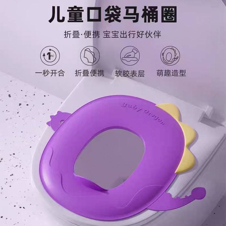 ที่นั่งชักโครกพับได้แบบพกพาสำหรับเด็ก ลายไดโนเสาร์ พร้อมกระเป๋าเก็บของ วัสดุ ABS สำหรับการเดินทาง
