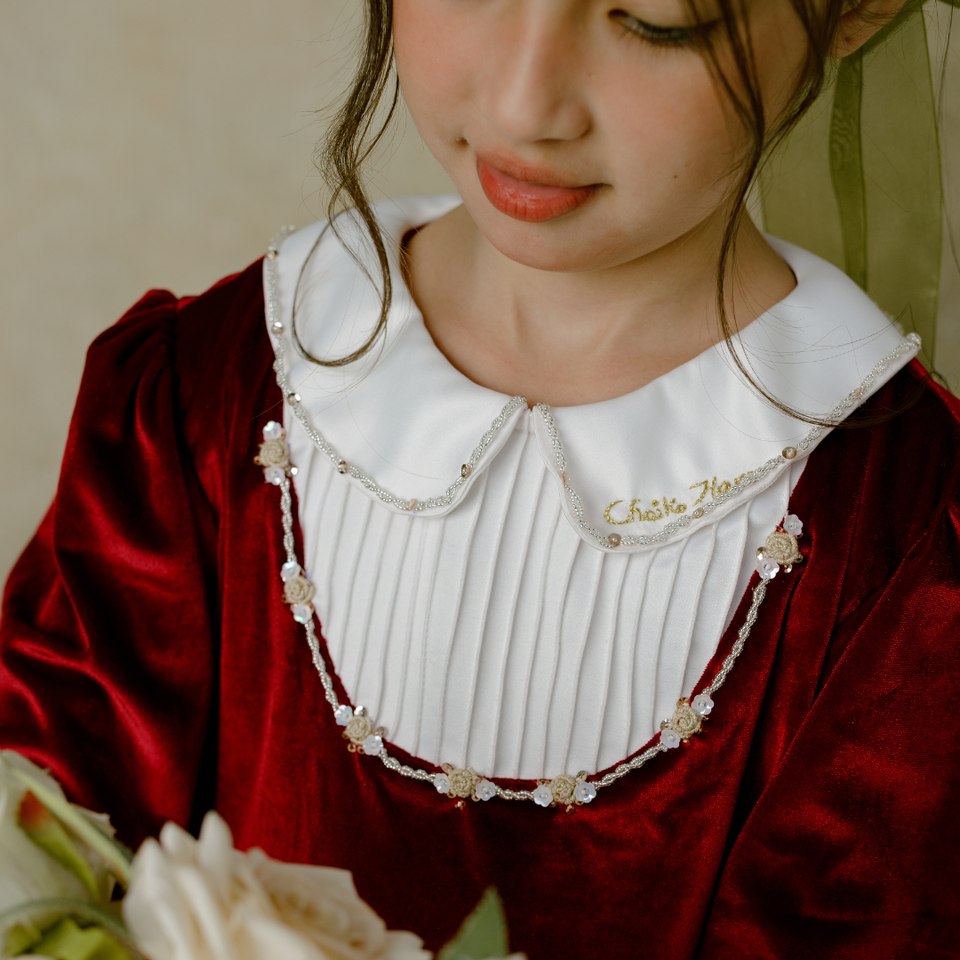 ลวดลาย:ดอกไม้ปักด้วยมือประดับด้วยลูกปัด