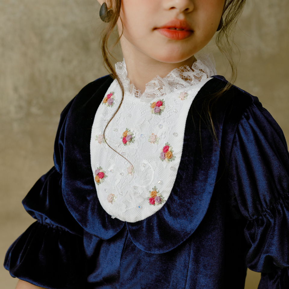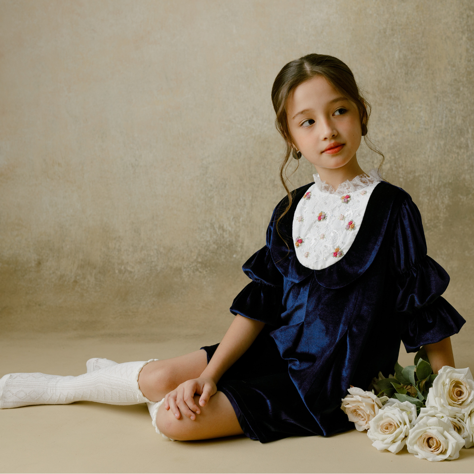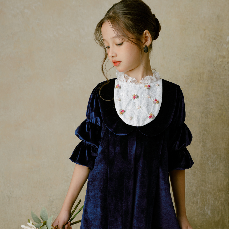 ชุดเดรสสำหรับเด็กทารกชุดเดรสยาวถึงเข่าทรงตรงผ้าซาตินผ้าลูกไม้กำมะหยี่ลายดอกไม้สำหรับเด็กผู้หญิงปักด้วยมือประดับด้วยลูกปัด-Jena