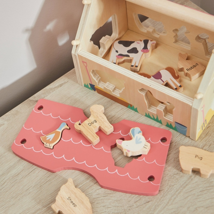ชุดของเล่นไม้ปริศนาเคลื่อนย้ายได้สำหรับเด็กทารกชุดของเล่นในฟาร์ม