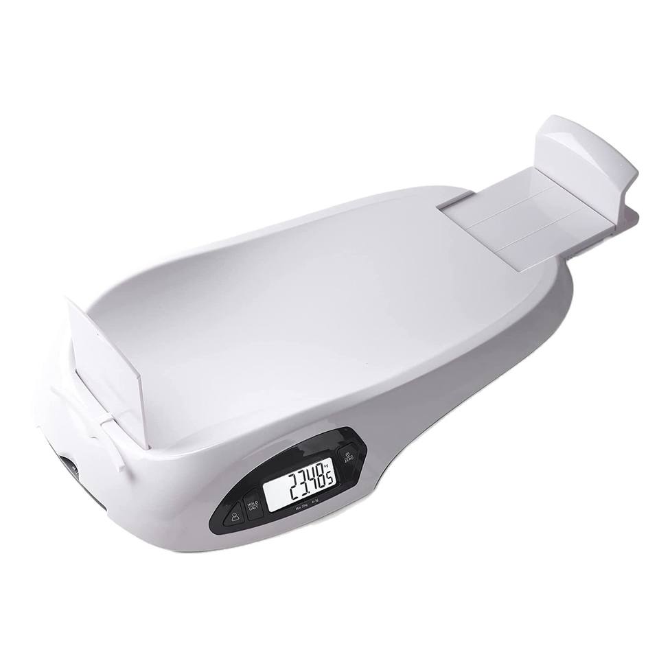 เครื่องชั่งน้ำหนักอิเล็กทรอนิกส์สำหรับเด็กพร้อมถาดรูปวงรี วัดน้ำหนักดิจิตอล วัดส่วนสูง ใช้พลังงานจากแบตเตอรี่ สีขาว รุ่น MK07-BS07
