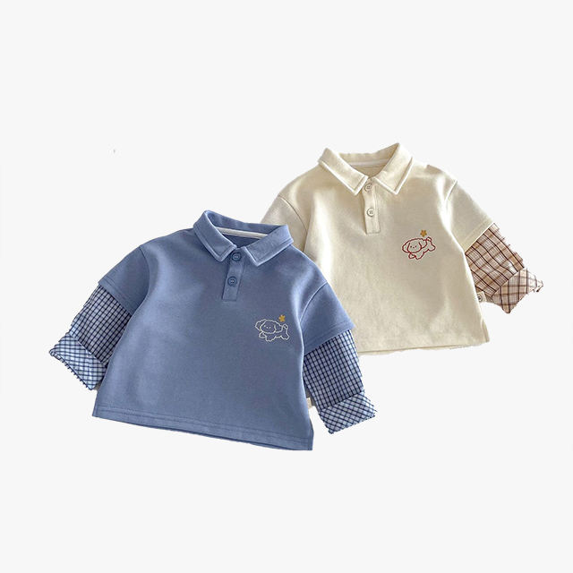 เสื้อโปโลแฟชั่นเด็ก 2026 สไตล์ฤดูใบไม้ผลิใหม่ เสื้อยืดลายการ์ตูนเด็กผู้ชายแบบสองชิ้น เสื้อเด็กสำหรับฤดูใบไม้ผลิ