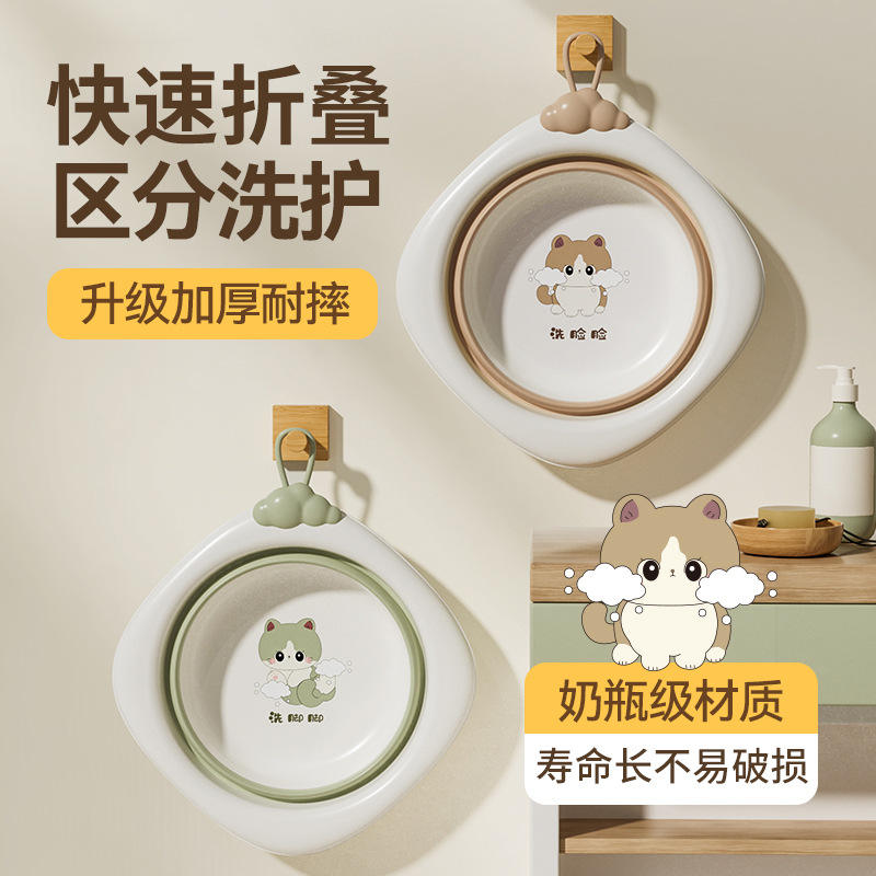 อ่างล้างหน้าเด็กแบบพับได้ พลาสติกหนาทรงสี่เหลี่ยมขนาดใหญ่ อเนกประสงค์สำหรับใช้ในห้องน้ำทารกแรกเกิด พร้อมดีไซน์การ์ตูน