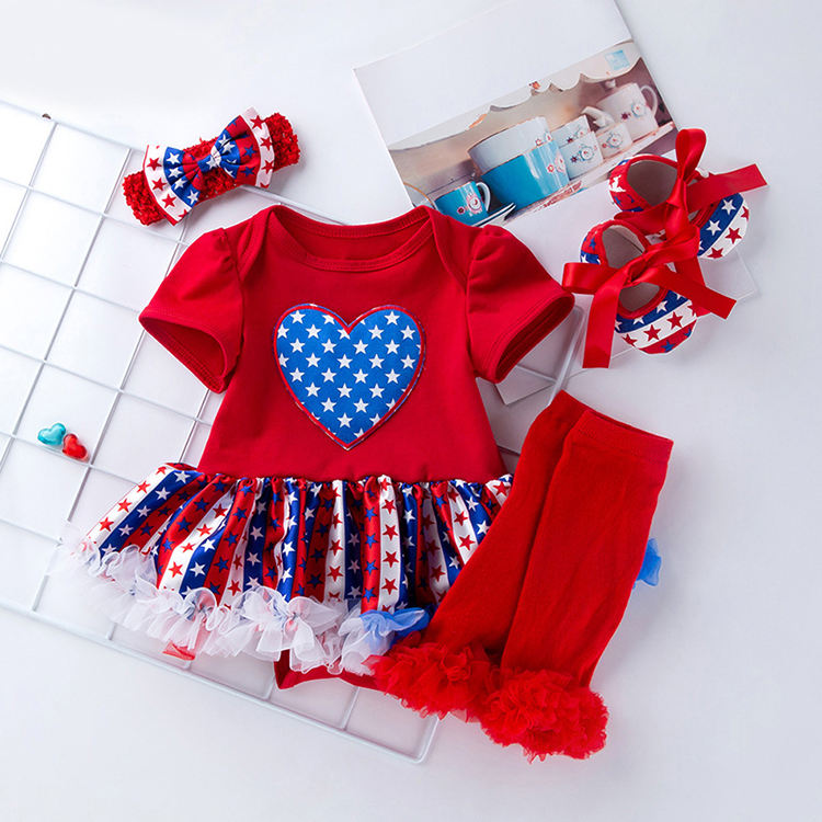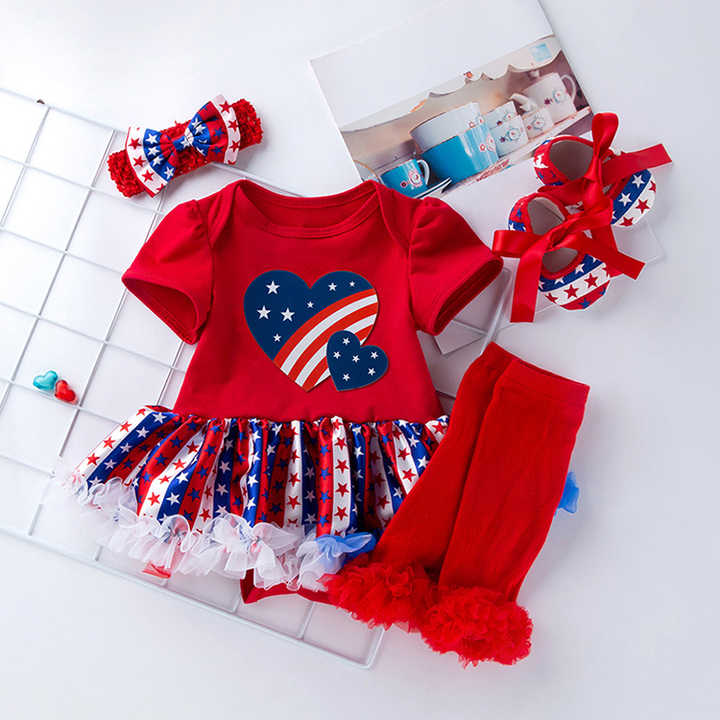 ชุดเสื้อผ้าบูติกสำหรับเด็กผู้หญิง ชุดวันประกาศอิสรภาพของสหรัฐอเมริกา ผ้าฝ้าย ฤดูร้อน เสื้อผ้าเด็กน่ารัก วันที่ 4 กรกฎาคม