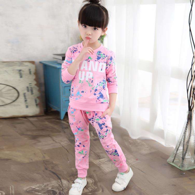 ชุดเสื้อผ้าเด็กผู้หญิงแฟชั่นแขนยาวพิมพ์ลายดอกไม้เสื้อยืดเด็กวัยหัดเดิน + กางเกง 2 ชิ้น 3 4 8 ปีเด็กผู้หญิงสวมใส่