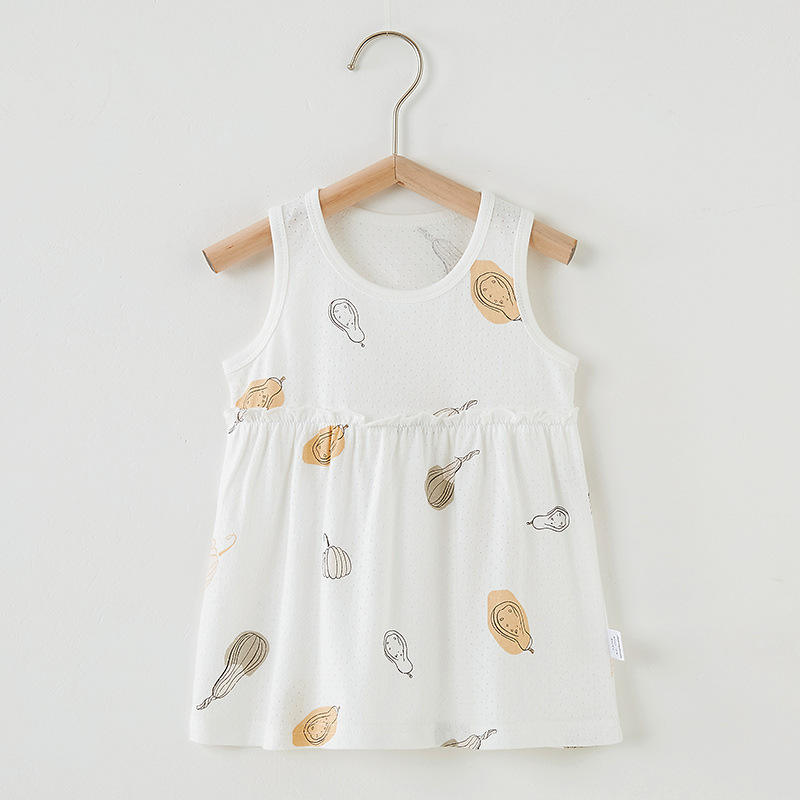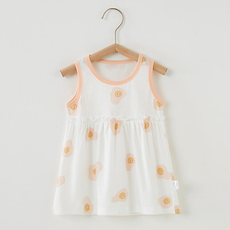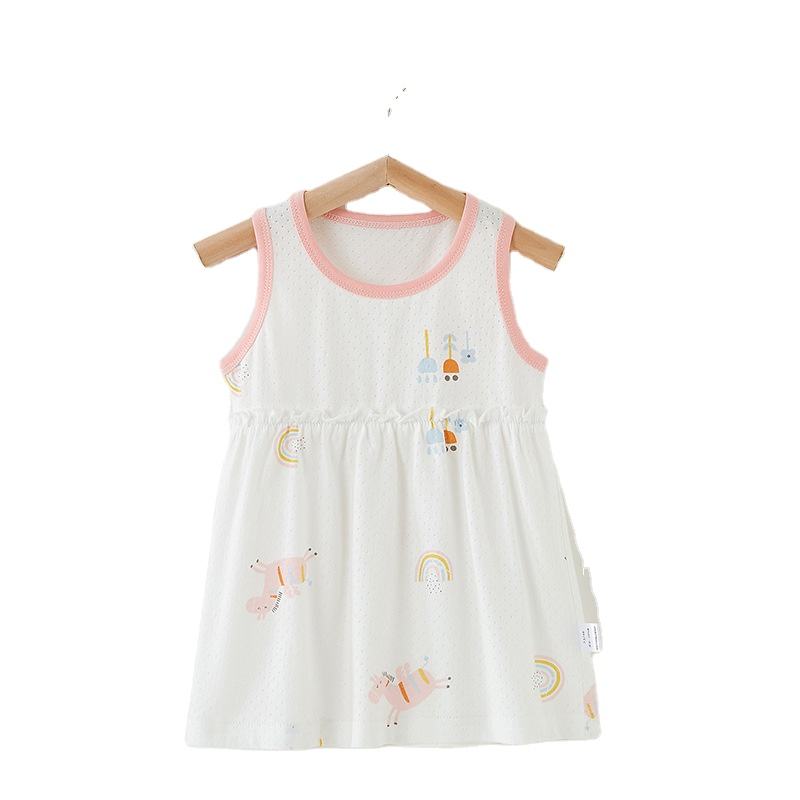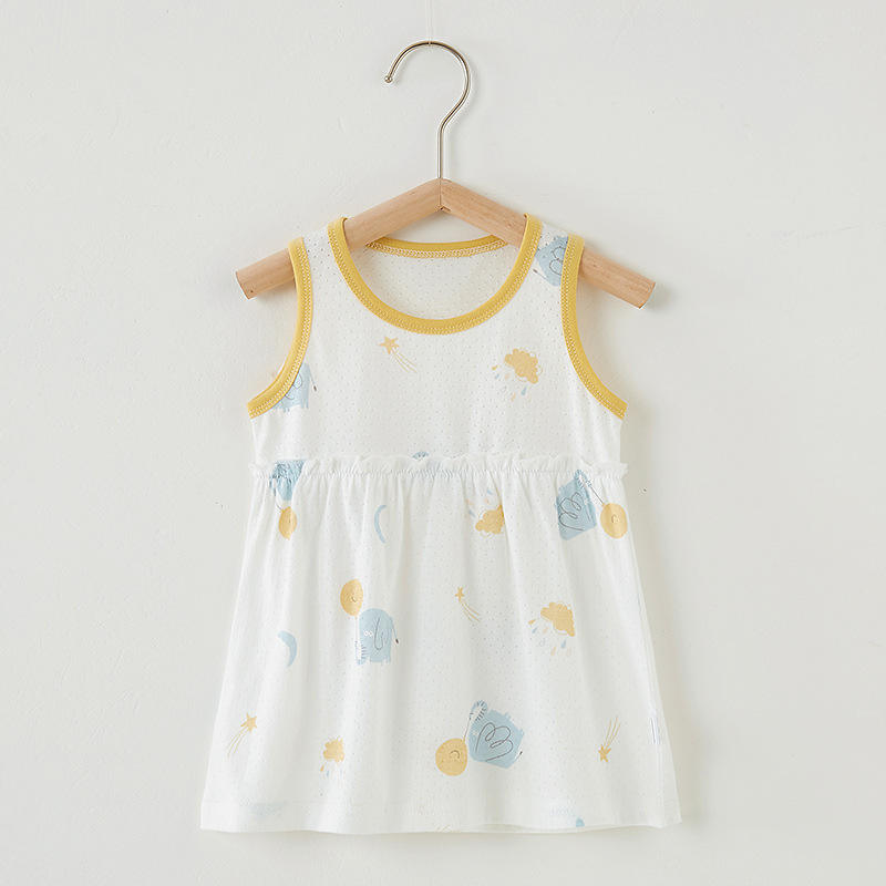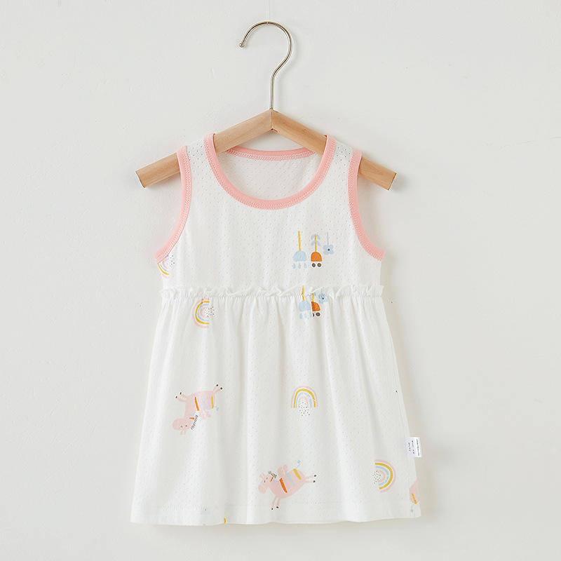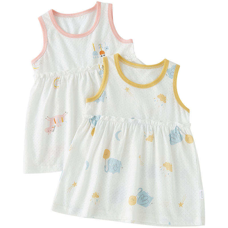 Baby Girl's Summer Cotton Vest Dress Foreign Style Small Skirt Sleeveless Princess Nightdress Cartoon Print Plus Size 0-2 Years