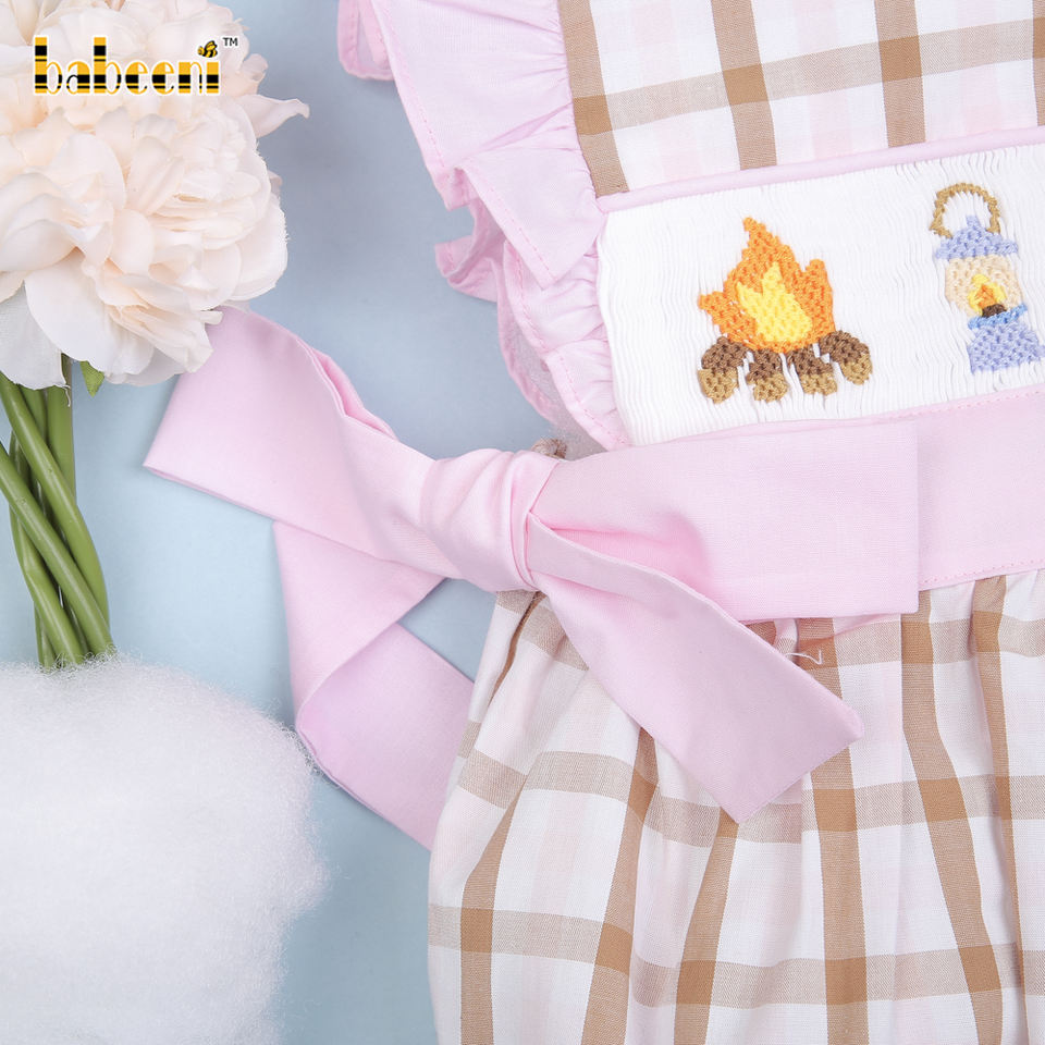 ชุดรอมเปอร์เด็กผู้หญิงลายสก็อตผ้าฝ้ายออร์แกนิค 100% ตกแต่งด้วยลายปักมือ ติดกระดุมแป๊ก สำหรับฤดูร้อน รับผลิตแบบ OEM ODM ขายส่ง