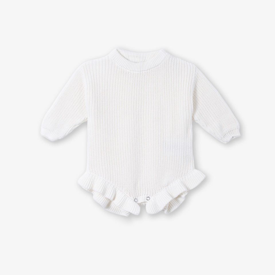 ชุดรอมเปอร์เด็กผู้หญิงน่ารัก แต่งระบาย ผ้าถักนิตติ้ง 100% ผ้าฝ้าย สีพื้น สำหรับฤดูหนาว ODM & OEM เสื้อผ้าเด็กถักนิตติ้งจากเวียดนาม แห้งเร็ว ติดกระดุม YKK