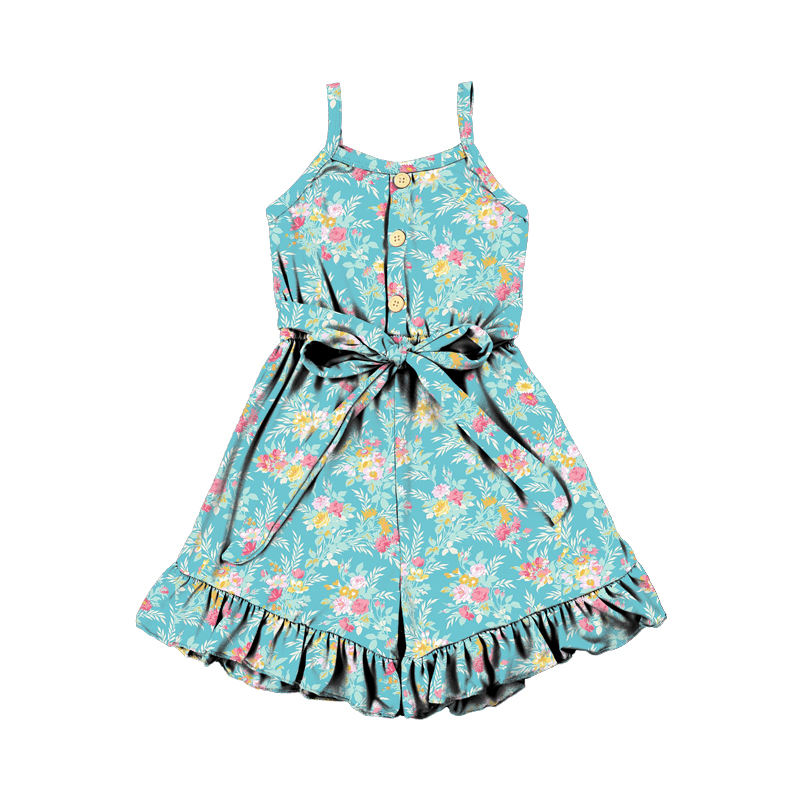 จั๊มสูทขาสั้นเด็กผู้หญิง ชุดรอมเปอร์แบบชิ้นเดียว ดีไซน์สั่งทำพิเศษ ติดกระดุมแป๊ก ผ้ายืด/โพลีเอสเตอร์ สำหรับฤดูร้อน