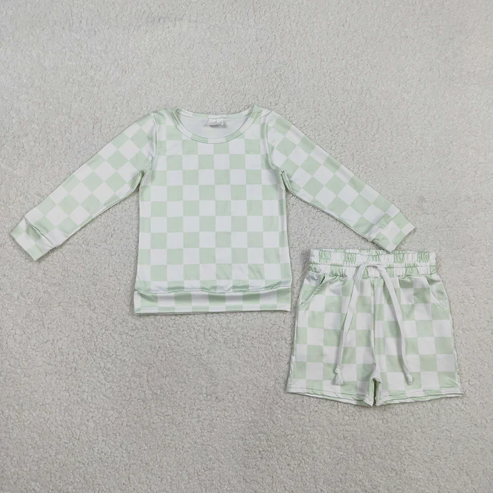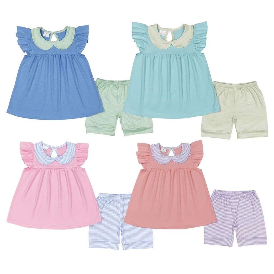 เด็กผู้หญิงแขนสั้นลายพรางโบว์กระดุมเสื้อกางเกงขาสั้นชุดนอนชุดเสื้อผ้า