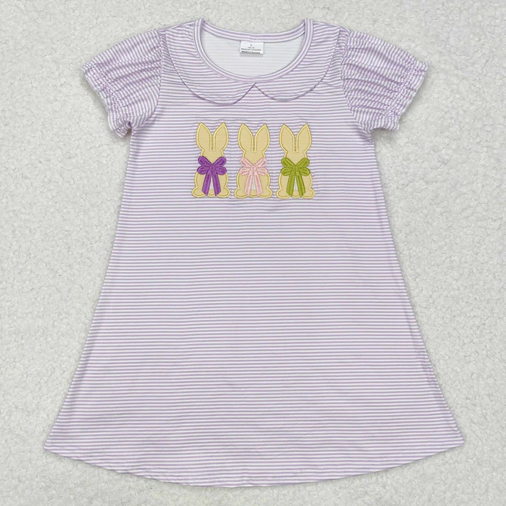 เด็กผู้หญิง ชุดเดรสแขนสั้นลายไข่ โบว์ หัวใจ อีสเตอร์ ความยาวระดับเข่า