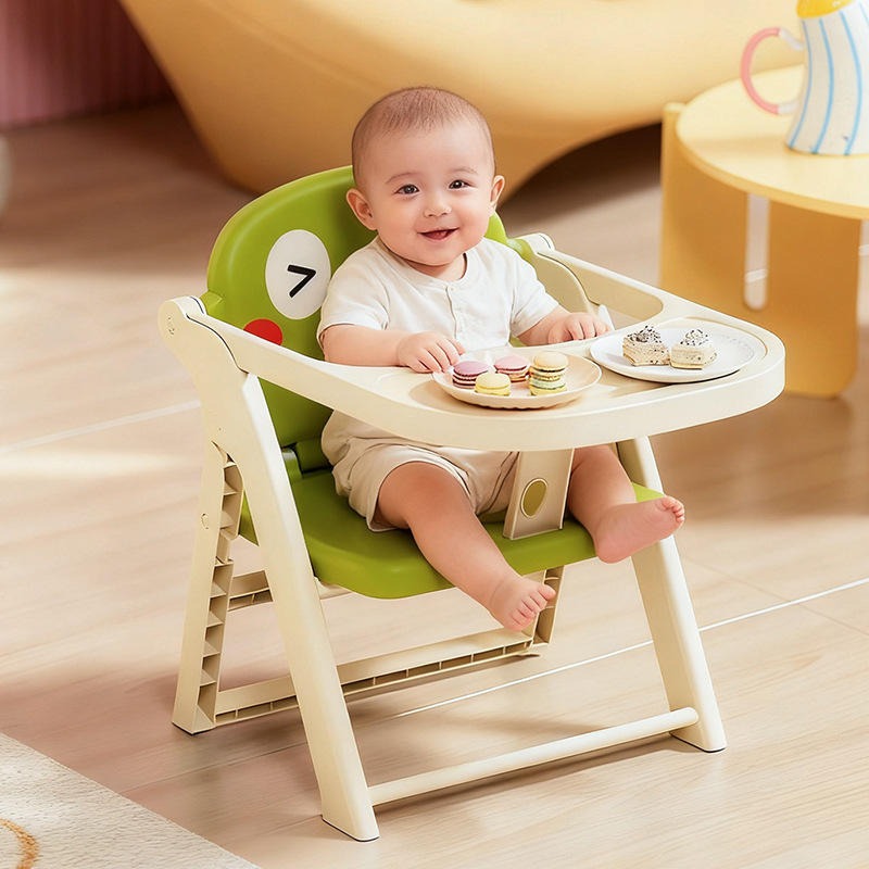 เก้าอี้สูงสำหรับเด็กแบบพกพาพับได้เก้าอี้พลาสติกพร้อมถาดสำหรับเด็กอายุ 2-4 ปีมัลติฟังก์ชั่นการออกแบบกันลื่นแบบหนา