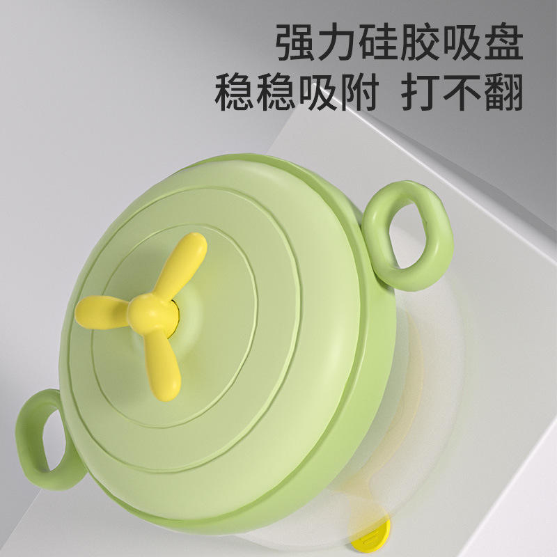 ชามเก็บความร้อนสำหรับเด็กพร้อมหูจับคู่ สีเขียวชมพู 0-12 เดือน จานอุ่นอาหาร