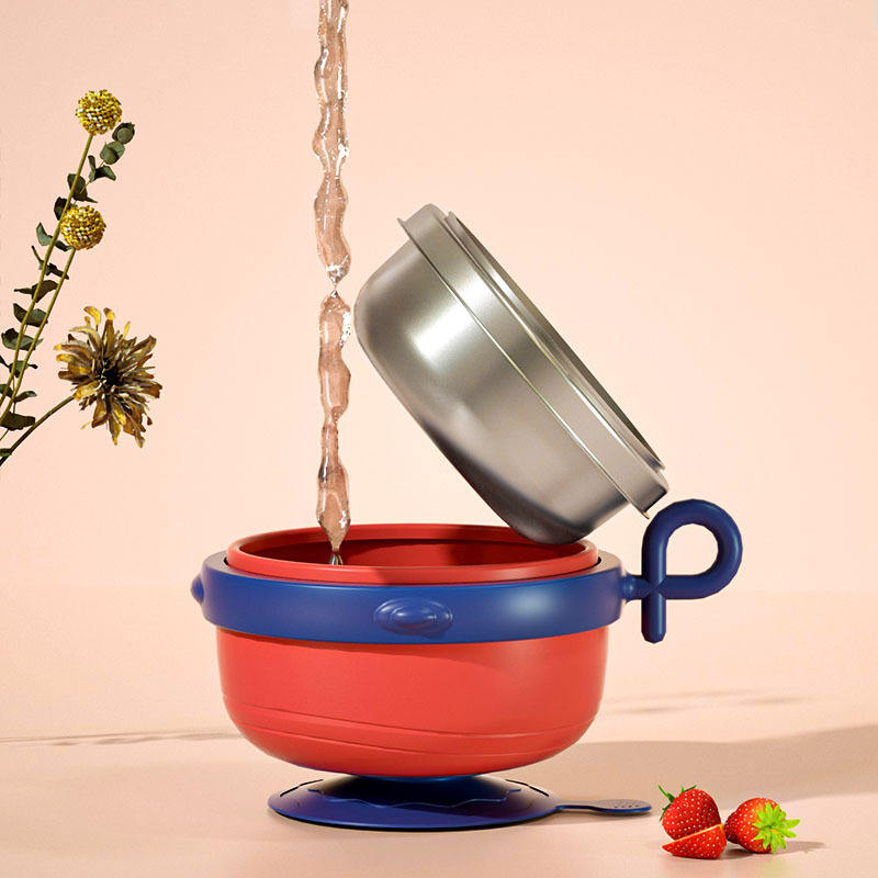 ชามใส่อาหารเด็กแบบมีฉนวนสแตนเลส 316 ป้องกันน้ำร้อนลวกเติมน้ำได้ ฝึกทานอาหาร ภาชนะใส่อาหารสำหรับเด็กทารก 0-12 เดือน