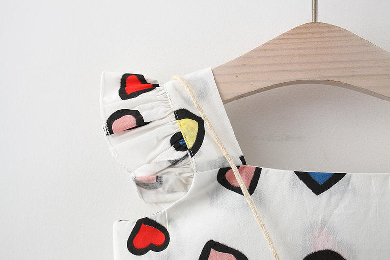 เสื้อผ้าเด็กทารก ชุดเดรสสำหรับเด็กผู้หญิง ชุดเดรสผ้าฝ้ายแขนสั้นพิมพ์ลาย