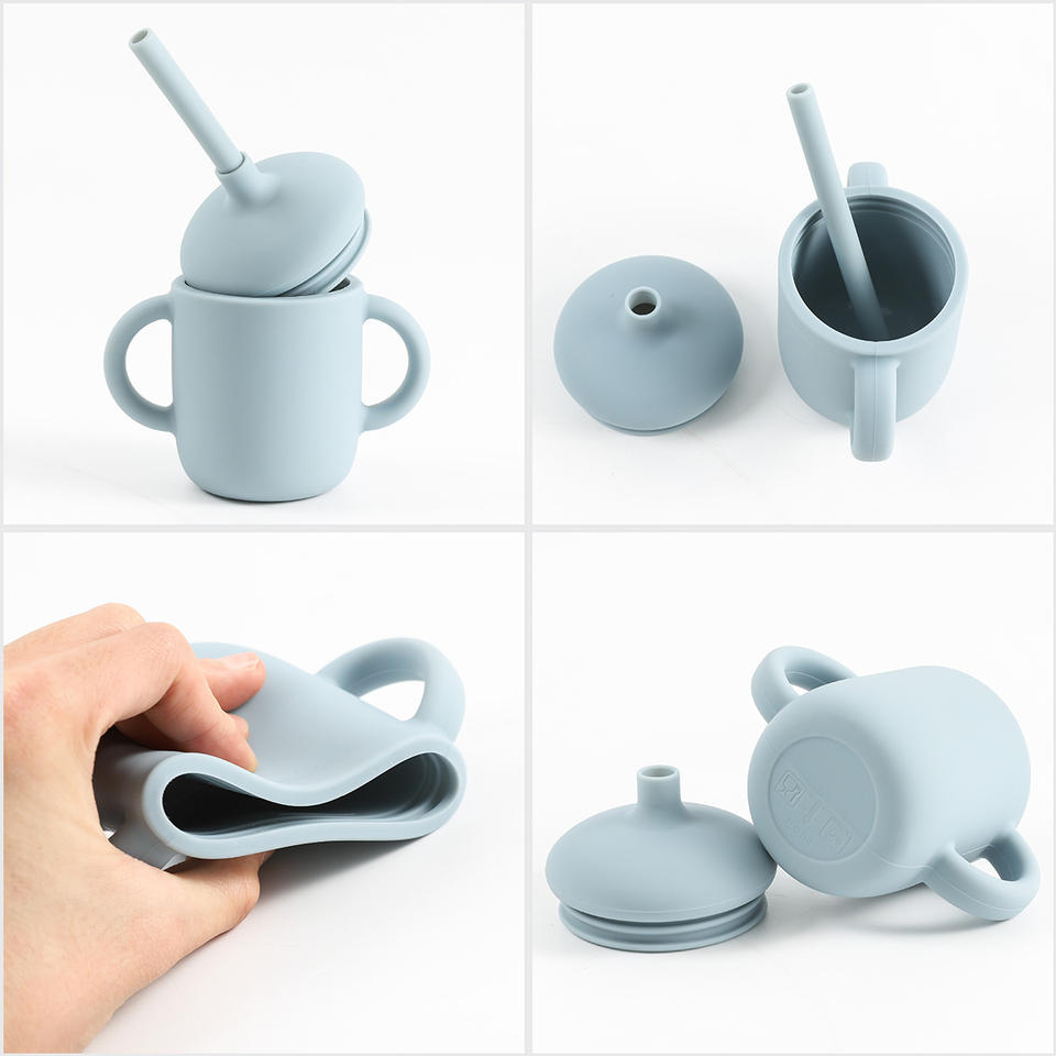 ถ้วยซิลิโคนหัดดื่มพร้อมหลอด360กันหกใช้ซ้ำได้