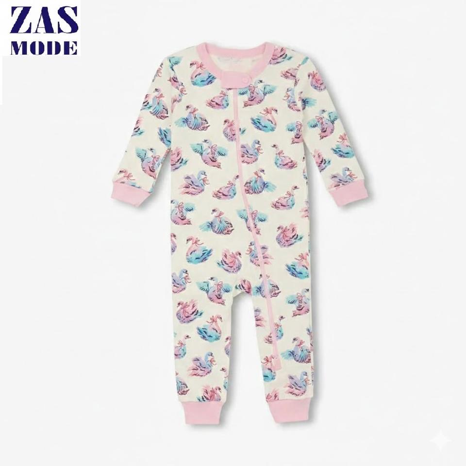 ชุดบอดี้สูทเด็กทารก ผ้าฝ้ายถัก ยูนิเซ็กซ์ สีชมพูพาสเทล ลายพิมพ์ดิจิทัลนักบัลเลต์ ซิป YKK สองทาง แขนยาว เนื้อผ้านุ่ม เป็นมิตรต่อสิ่งแวดล้อม