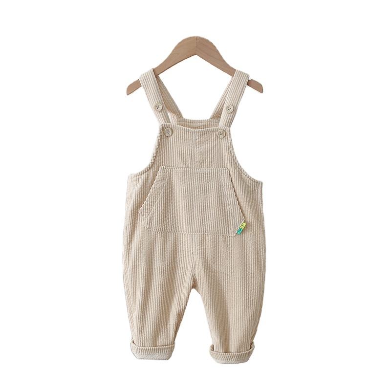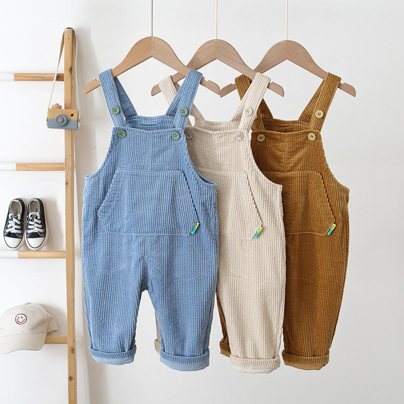 กางเกงผ้าลูกฟูกสำหรับเด็กวัยหัดเดินกางเกงลำลองทรงหลวมสีน้ำตาลมีกระเป๋าสำหรับเด็กผู้ชาย