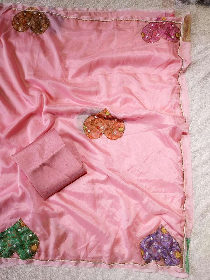 ส่าหรีผ้าไหม Tebby สำหรับเด็กทารกสีชมพูบริสุทธิ์พร้อมลายดอกไม้ส่งออกที่ทันสมัยที่สุดเสื้อเบลาส์สุดพิเศษสำหรับงานแต่งงานของผู้หญิง