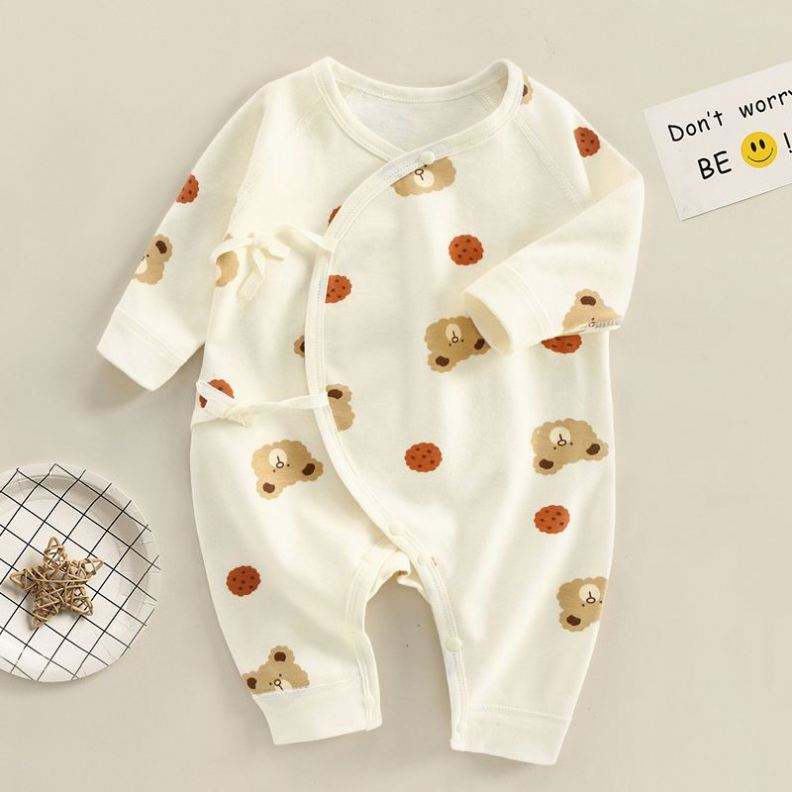 ชุดรอมเปอร์เด็กทารกขายส่ง เสื้อผ้าเด็กพิมพ์ลาย ชุดรอมเปอร์เด็กแขนยาวระบาย สำหรับเด็กแรกเกิด