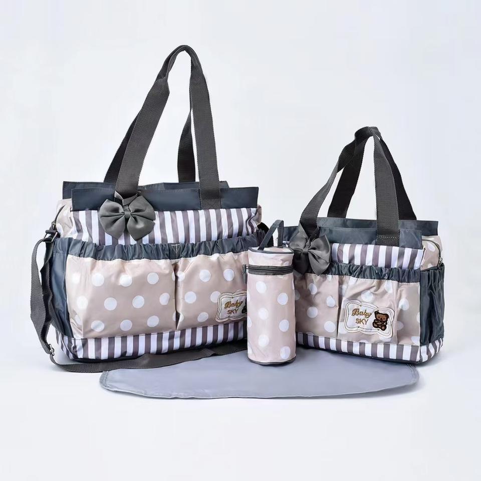 ชุดกระเป๋าผ้าอ้อมเบบี้สกายความจุขนาดใหญ่กันน้ำพร้อมลายปักหมีสำหรับจัดเก็บของใช้สำหรับดูแลเด็ก
