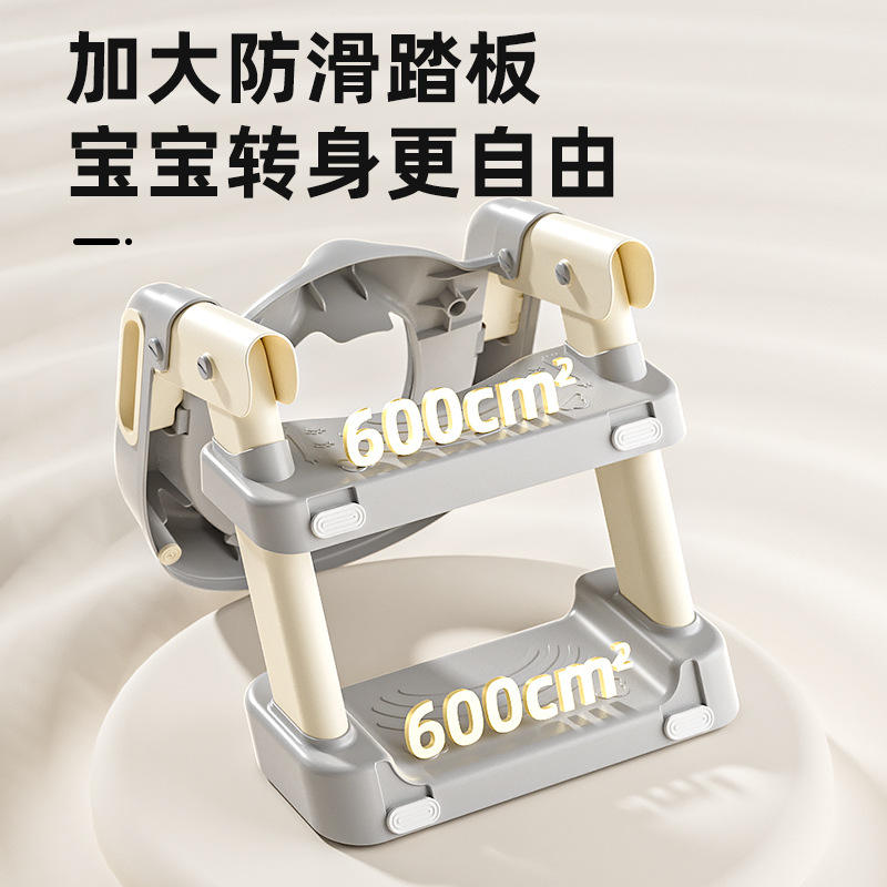 เก้าอี้ฝึกขับถ่ายเด็กแบบมีบันไดกันลื่น วัสดุ PP สีเทาเบจ