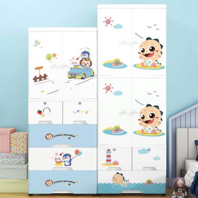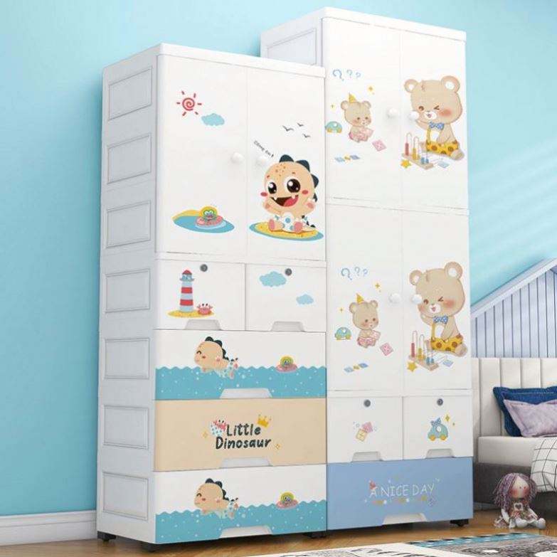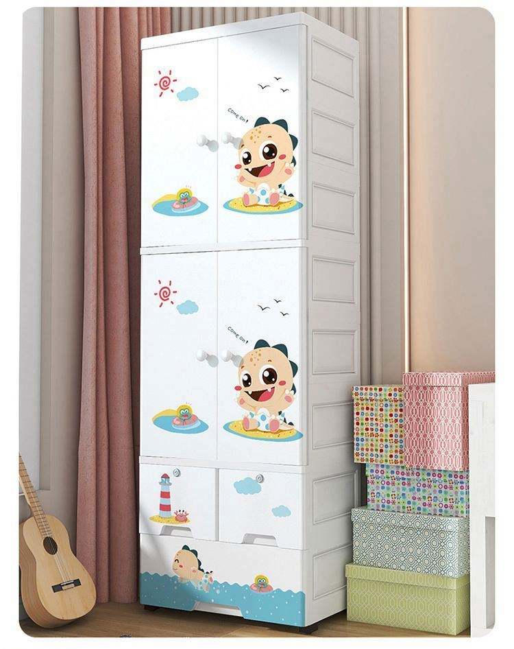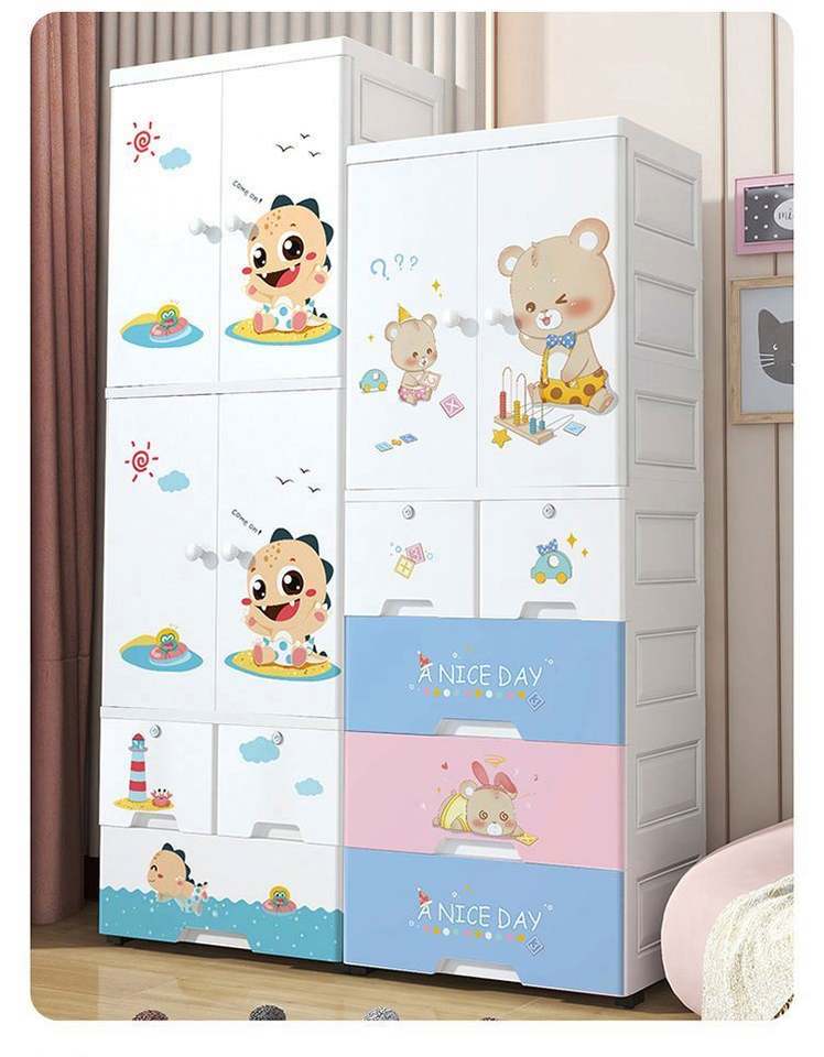 ตู้ลิ้นชักเก็บของเด็ก 4 ชั้น แบบมีประตูเปิด 2 บาน ลายการ์ตูน ผลิตจากพลาสติก PP ทนทาน ใช้งานได้หลากหลาย