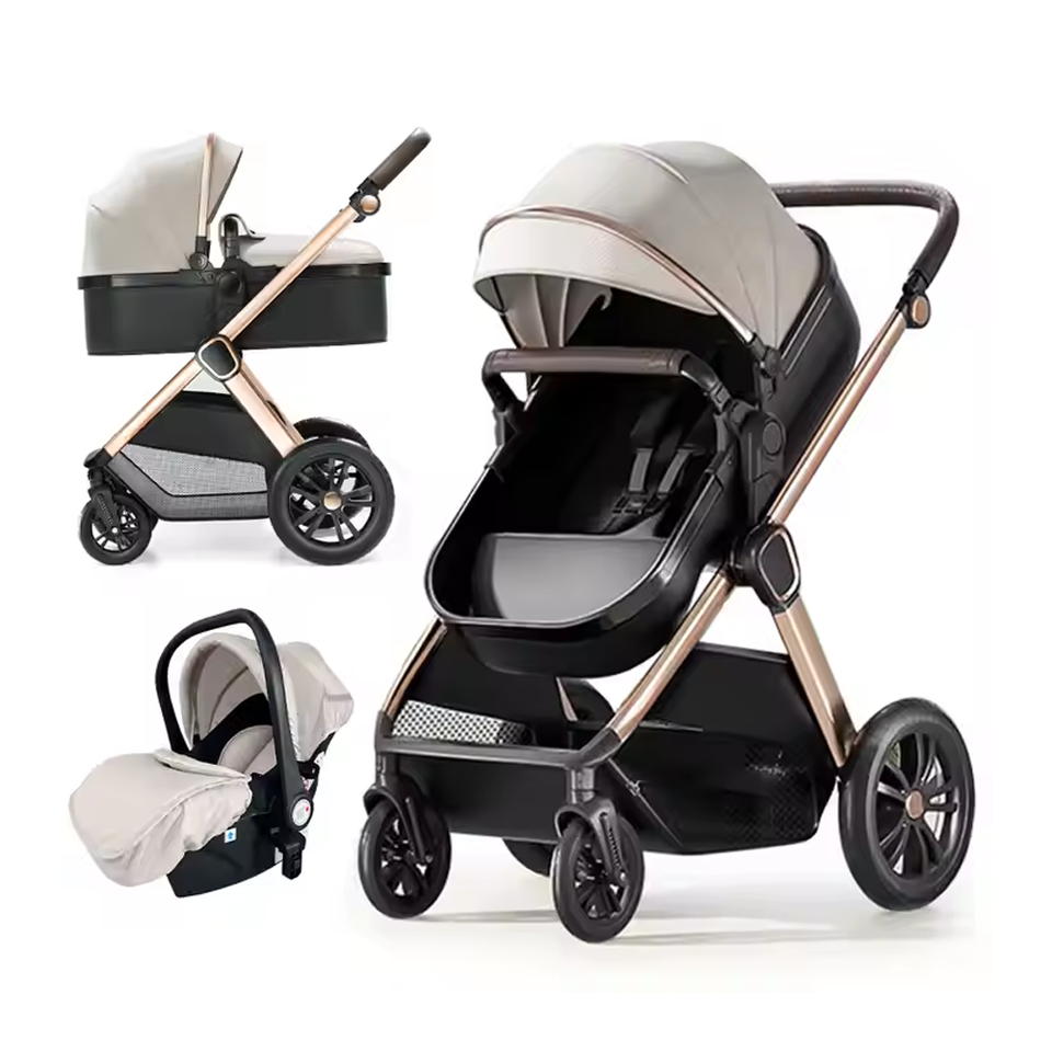 รถเข็นเด็กทารกสีเบจระบบการเดินทางเดี่ยว