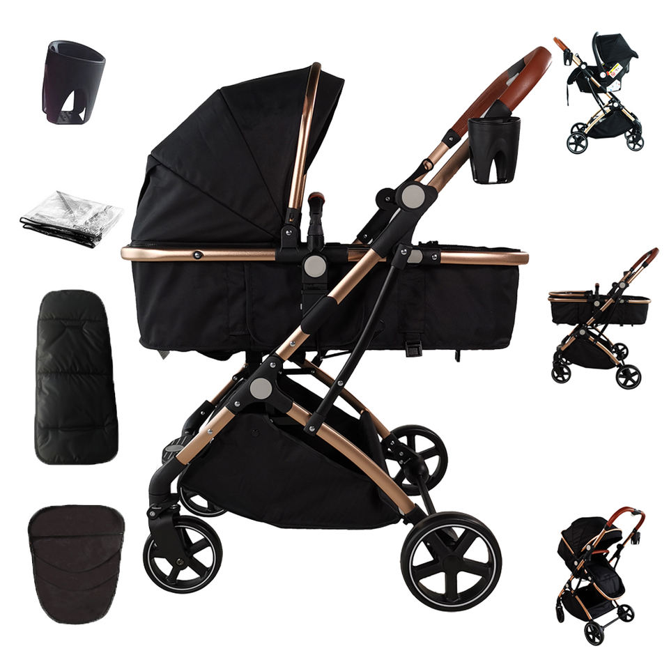 รถเข็นเด็กแบบ3 in 1สำหรับเด็กแรกเกิดรถเข็นเด็กพับได้รถเข็นเด็กน้ำหนักเบาสำหรับเดินทางแบบหรูหรา