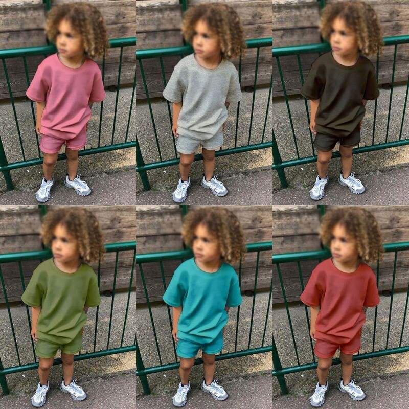 ชุดเสื้อผ้าเด็กฤดูร้อน ชุดเด็กผู้หญิง เสื้อยืดสีพื้น+กางเกงขาสั้น ชุดเด็กผู้ชาย 2 ชิ้น ชุดเซ็ตผ้าฝ้าย