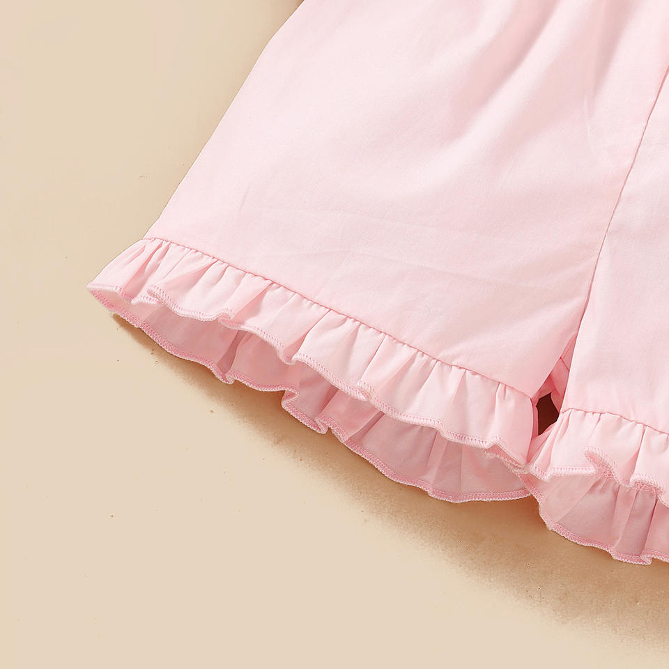 คำอธิบาย:ชุดเสื้อผ้าเด็กผู้หญิง กางเกงขาสั้น ลายดอกไม้สีพาสเทล สไตล์เจ้าหญิง
