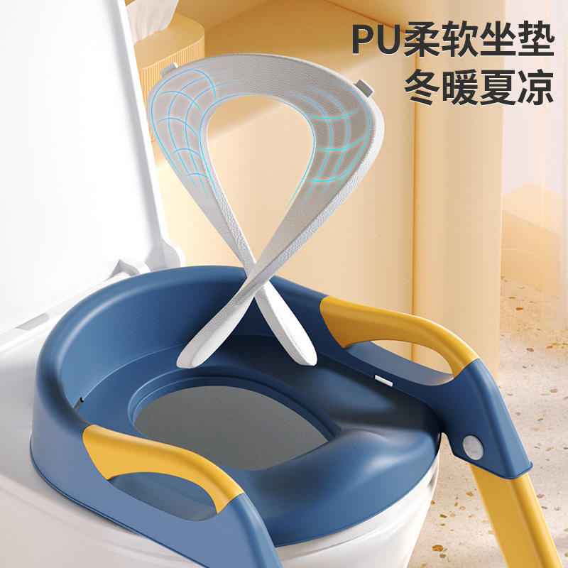 ที่นั่งชักโครกเด็กพร้อมเก้าอี้พลาสติกสำหรับเด็กวัยหัดเดิน 2-4 ปี สีฟ้าและสีเหลือง